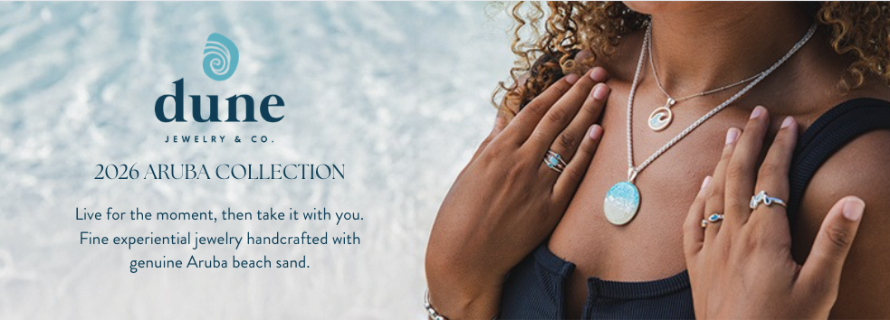 Dune Jewelry creates handcrafted pieces using sand and natural elements, capturing memories and meaningful moments in timeless designs.