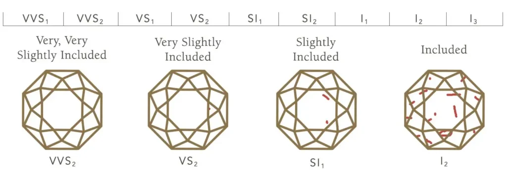 This is another important thing to look for when buying the perfect diamond, as it can also have an effect on a diamond’s value. Diamonds can have internal characteristics, also known as inclusions, as well as external characteristics that are known as blemishes. A flawless diamond, one that has neither inclusions nor blemishes, is very rare. When a grader looks at clarity, he uses magnification and specific lighting and determines the diamond’s clarity grade based on the particular characteristics he sees.